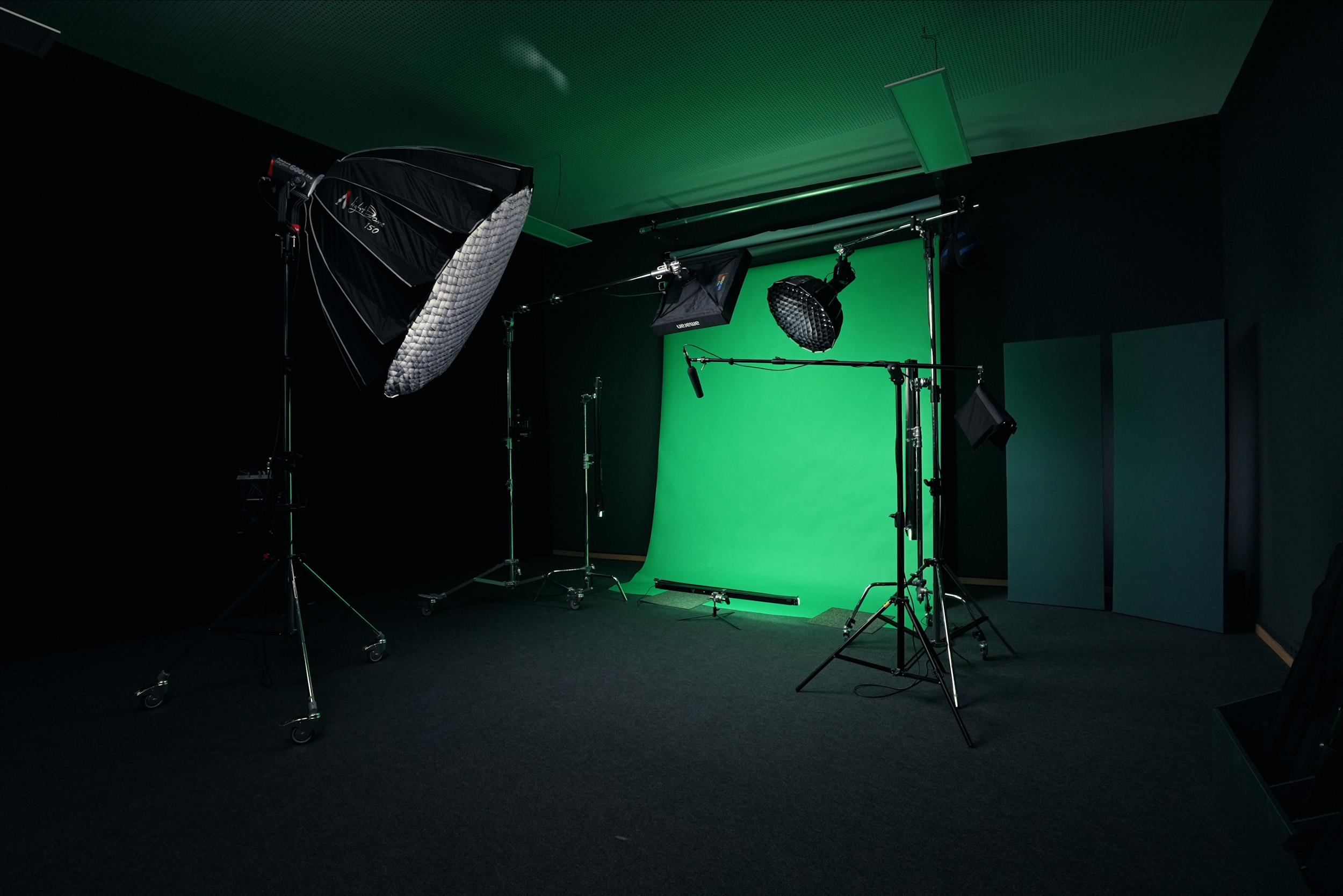 Für dein Shooting bieten wir dir den grünen Backdrop und ein vollständiges Licht-Setup für Motiv und Hintergrund.